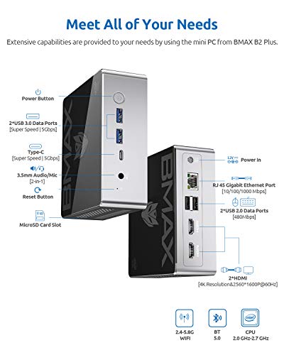 Specification: BMAX Mini Pc B2Plus Computer 8GB+128GB+SSD Intel Gemini Lake N4120 Windows 10 Pro Desktop Quad-Core CPU Processor 4KHD Con Porta USB-C/HDMI/Mini DP Dual Band WiFi Gigabit Ethernet BT5.0