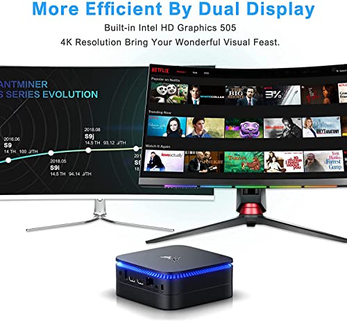 【Multimedia Center PC】The built-in HD 505 graphics of the mini desktop computer with shared video memory delivers rich, detailed images for Internet use, movies, basic photo editing and light games. Connect monitors via the two HDMI ports and enjoy a great viewing experience for Netflix and Youtube via the dual screen display. Your great home cinema PC!