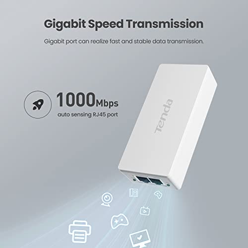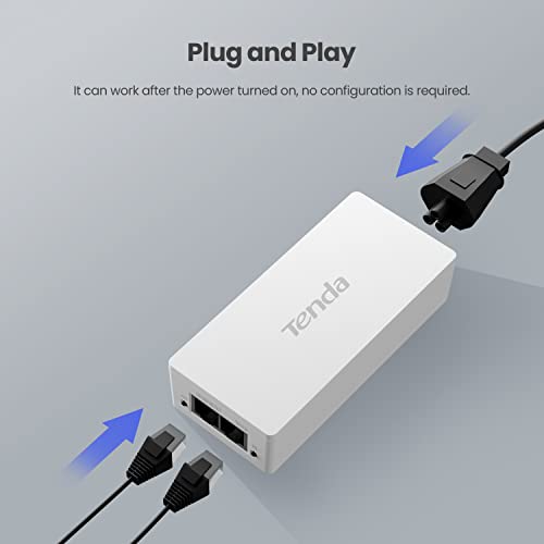 Tenda PoE30G-AT Gigabit PoE Injector, 48V-54V/30W PoE+ Injector, PoE Injektor (kompatibel mit IEEE 802.3af/at, 10/100/1000 Mbit/s RJ-45, Plug & Play) PoE Adapter, weiß