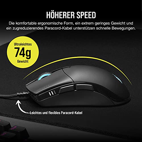 Specification: CORSAIR SABRE RGB PRO CHAMPION SERIES Kabelgebundene Ultra-Light FPS/MOBA Gaming Maus – 18.000 DPI – Ergonomisches Design – iCUE Kompatibel – PC, Mac, PS5, PS4, Xbox – Schwarz
