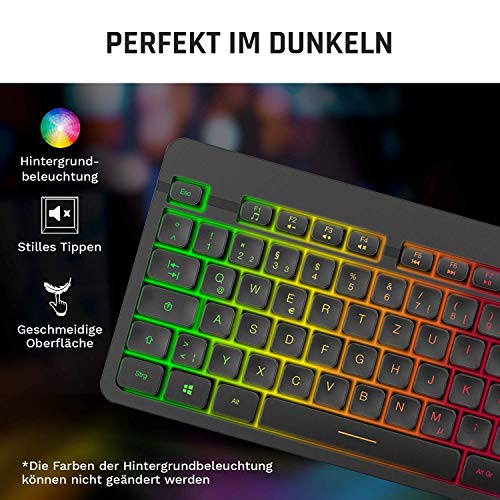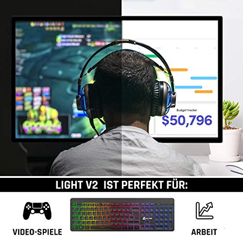 KLIM Light V2 Gaming Tastatur Kabellos QWERTZ + NEU 2023 + flach, ergonomisch, dezent, wasserresistent + Beleuchtete Gaming Tastatur für PC Mac PS4 PS5 + Integrierter Akku mit Langer Lebensdauer