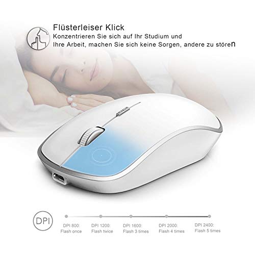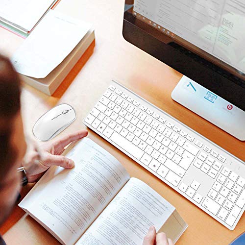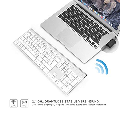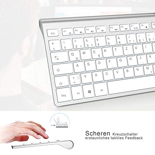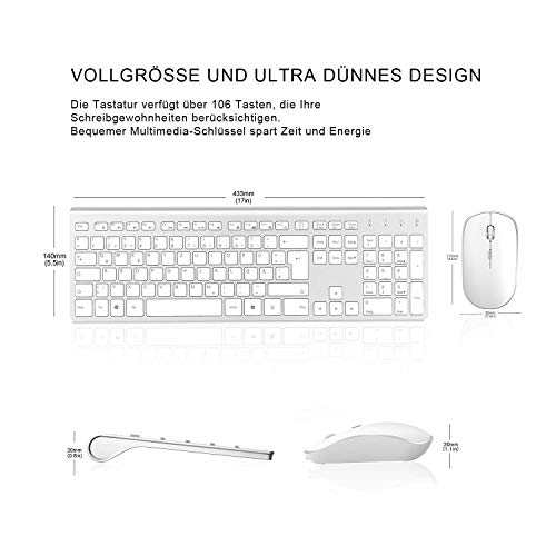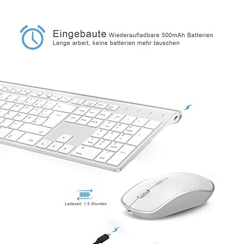 Specification: J JOYACCESS Tastatur Maus Set Kabellos, Funktastatur mit Maus, 500mAh Wiederaufladbar Akku, 2.4G Ultraslim Funktastatur mit Ziffernblock(Deutsch QWERTZ Layout) für PC/Laptop/Smart TV – Silber und Weiß