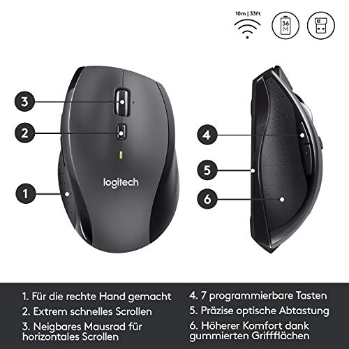 Specification: Logitech M705 Marathon Kabellose Maus, 2,4 GHz mit USB-Unifying-Empfänger, 1000 DPI, 5 programmierbare Tasten, 3-Jahres-Batterie, Kompatibel mit PC, Mac, Laptop und Chromebook – Grau